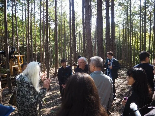 3日目の10月30日はCREVAおおくまにて福島大学環境放射能研究所のヴァシル・ヨシェンコ教授より「福島の森林における環境放射能」についての講義と富岡町のスギ林でフィールドワークを行いました。その後、中間貯蔵施設に行き、環境省の職員より除去土壌についての説明を受けました。4日目の10月31日はドローンパーク川内で代表の神藤俊男氏より事故当時の体験とドローンパーク川内の創業について講話を聞き、敷地内の空間線量率の測定を行いました。その後、いわなの郷にて川内村の遠藤雄幸村長より「川内村の震災から復興までの歩み、現在の課題」について講義が行われました。最終日の11月1日はJ-VILLAGEにてIDPAメソッドの総括とディスカッションが行われ、最後にロシャール客員教授と髙村教授による閉会の挨拶があり、本年度の「原子力災害の復興に関する国際研修コース」が終了しました。今年度のセミナーも多くの質問や様々なディスカッションが行われました。